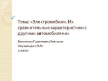 Тема Электромобили Их сравнительные характеристики с другими автомобилями