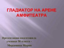 ГЛАДИАТОР НА АРЕНЕ АМФИТЕАТРА Презентацию подготовила ученица 5
