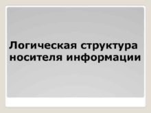 Логическая структура носителя информации ЛОГИЧЕСКАЯ СТРУКТУРА НОСИТЕЛЯ