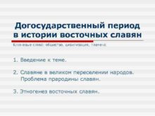 Догосударственный период в истории восточных славян Ключевые слова