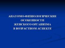 АНАТОМО-ФИЗИОЛОГИЧЕСКИЕ ОСОБЕННОСТИ ЖЕНСКОГО ОРГАНИЗМА В ВОЗРАСТНОМ АСПЕКТЕ