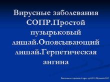Вирусные заболевания СОПР Простой пузырьковый лишай Опоясывающий лишай