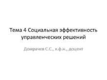 Тема 4 Социальная эффективность управленческих решений Домрачев С