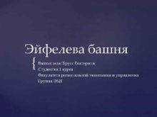 Эйфелева башня Выполнила Брусс Екатерина Студентка 1