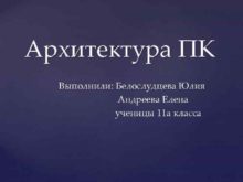 Архитектура ПК Выполнили Белослудцева Юлия Андреева Елена ученицы