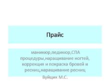Прайс маникюр педикюр СПА процедуры наращивание ногтей коррекция