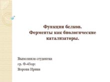 Функции белков Ферменты как биологические катализаторы Выполнила студентка