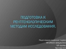 ПОДГОТОВКА К РЕНТГЕНОЛОГИЧЕСКИМ МЕТОДАМ ИССЛЕДОВАНИЯ Подготовила студентка 1