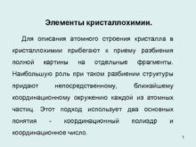 Элементы кристаллохимии Для описания атомного строения кристалла в