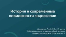 История и современные возможности эндоскопии Докладчик Глоба Ю