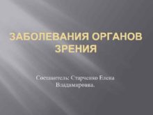 ЗАБОЛЕВАНИЯ ОРГАНОВ ЗРЕНИЯ Составитель Старченко Елена Владимировна