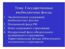 Особенности внебюджетных фондов составляющие в совокупности их экономическое
