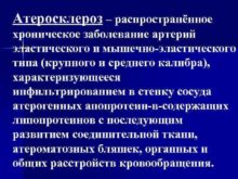 Атеросклероз распространённое хроническое заболевание артерий эластического и