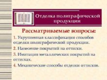 Отделка полиграфической продукции Рассматриваемые вопросы 1 Укрупненная