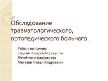 Обследование травматологического ортопедического больного Работу выполнил студент 6