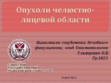 Опухоли челюстнолицевой области Выполнила студентка Лечебного факультета отд
