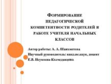 ФОРМИРОВАНИЕ ПЕДАГОГИЧЕСКОЙ КОМПЕТЕНТНОСТИ РОДИТЕЛЕЙ В РАБОТЕ УЧИТЕЛЯ НАЧАЛЬНЫХ