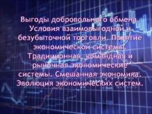Выгоды добровольного обмена Условия взаимовыгодной и безубыточной торговли