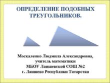 ОПРЕДЕЛЕНИЕ ПОДОБНЫХ ТРЕУГОЛЬНИКОВ Москаленко Людмила Александровна учитель математики