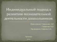 Индивидуальный подход к развитию познавательной деятельности дошкольников Выполнили