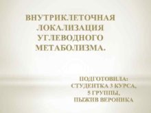 ВНУТРИКЛЕТОЧНАЯ ЛОКАЛИЗАЦИЯ УГЛЕВОДНОГО МЕТАБОЛИЗМА ПОДГОТОВИЛА СТУДЕНТКА 3 КУРСА