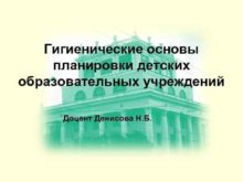 Гигиенические основы планировки детских образовательных учреждений Доцент Денисова