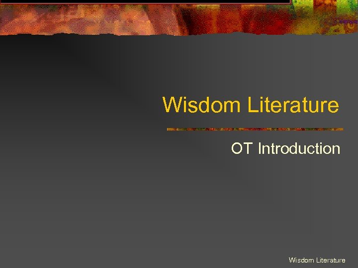 Wisdom Literature OT Introduction Wisdom Literature Introducing