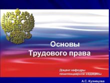 Основы Трудового права Доцент кафедры пенитенциарной медицины А