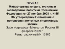 ПРИКАЗ Министерства спорта туризма и молодежной политики Российской