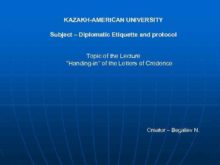 KAZAKH-AMERICAN UNIVERSITY Subject Diplomatic Etiquette and protocol