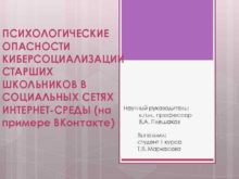 ПСИХОЛОГИЧЕСКИЕ ОПАСНОСТИ КИБЕРСОЦИАЛИЗАЦИИ СТАРШИХ ШКОЛЬНИКОВ В СОЦИАЛЬНЫХ СЕТЯХ