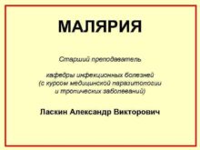 МАЛЯРИЯ Старший преподаватель кафедры инфекционных болезней с курсом