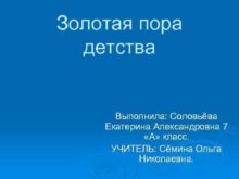 Золотая пора детства Выполнила Соловьёва Екатерина Александровна 7