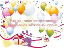 Бизнес-план организации праздников Розовый слон Основная цель