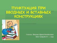 ПУНКТУАЦИЯ ПРИ ВВОДНЫХ И ВСТАВНЫХ КОНСТРУКЦИЯХ Учитель Вакулик