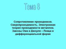 Сопротивление проводников Сверхпроводимость Электронная теория проводимости металлов Законы