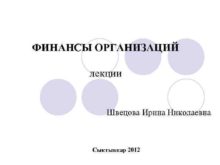 ФИНАНСЫ ОРГАНИЗАЦИЙ лекции Швецова Ирина Николаевна Сыктывкар 2012