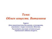 Тема Обмен веществ Витамины Задачи Дать характеристику белковому