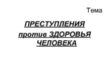 Тема ПРЕСТУПЛЕНИЯ против ЗДОРОВЬЯ ЧЕЛОВЕКА Система преступлений