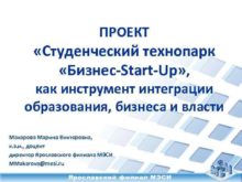 ПРОЕКТ Студенческий технопарк Бизнес-Start-Up как инструмент интеграции