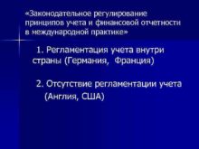 Законодательное регулирование принципов учета и финансовой отчетности