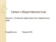 Связи с общественностью Лекция 7 Основные характеристики современных