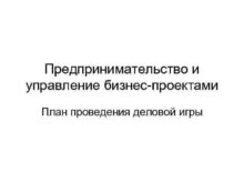 Предпринимательство и управление бизнес-проектами План проведения деловой игры