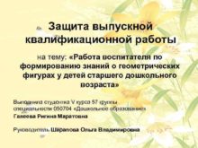 Защита выпускной квалификационной работы на тему Работа воспитателя