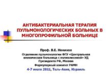 АНТИБАКТЕРИАЛЬНАЯ ТЕРАПИЯ ПУЛЬМОНОЛОГИЧЕСКИХ БОЛЬНЫХ В МНОГОПРОФИЛЬНОЙ БОЛЬНИЦЕ Проф