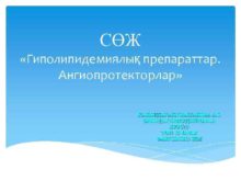 СӨЖ Гиполипидемиялық препараттар Ангиопротекторлар ҚАБЫЛДАҒАН УВАЖАНОВА А С