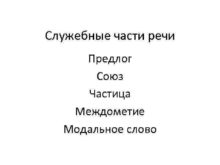 Служебные части речи Предлог Союз Частица Междометие Модальное