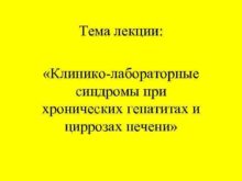 Тема лекции Клинико-лабораторные синдромы при хронических гепатитах и