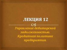 ЛЕКЦИЯ 12 Управление дебиторской задолженностью Кредитная политика предприятия