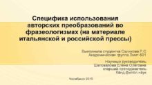 Специфика использования авторских преобразований во фразеологизмах на материале
